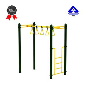 The product is manufactured in India. We used galvanized pipes & further powder coated to make a swing structure in the shape . It is attached with 2nos of rubberised swing seat with PVC coated chain